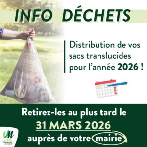 ‼️ Vous avez jusqu’au 31 mars 2026 pour retirer, dans votre mairie ou mairie déléguée, votre dotation initiale de sacs translucides pour l’année en cours