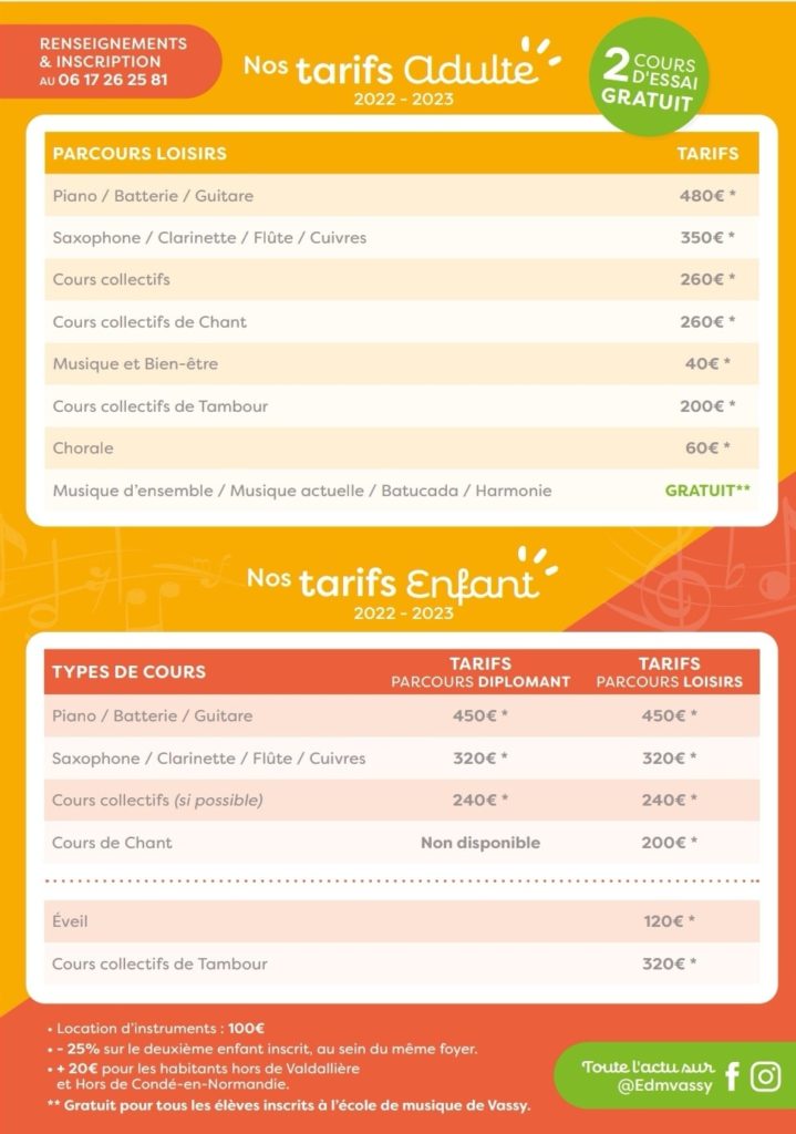 Pour tout renseignement, les intéressés peuvent contacter l’école de musique par email (musique.vassy@gmail.com) ou sur la page Facebook de l’école de musique (par message privé).
