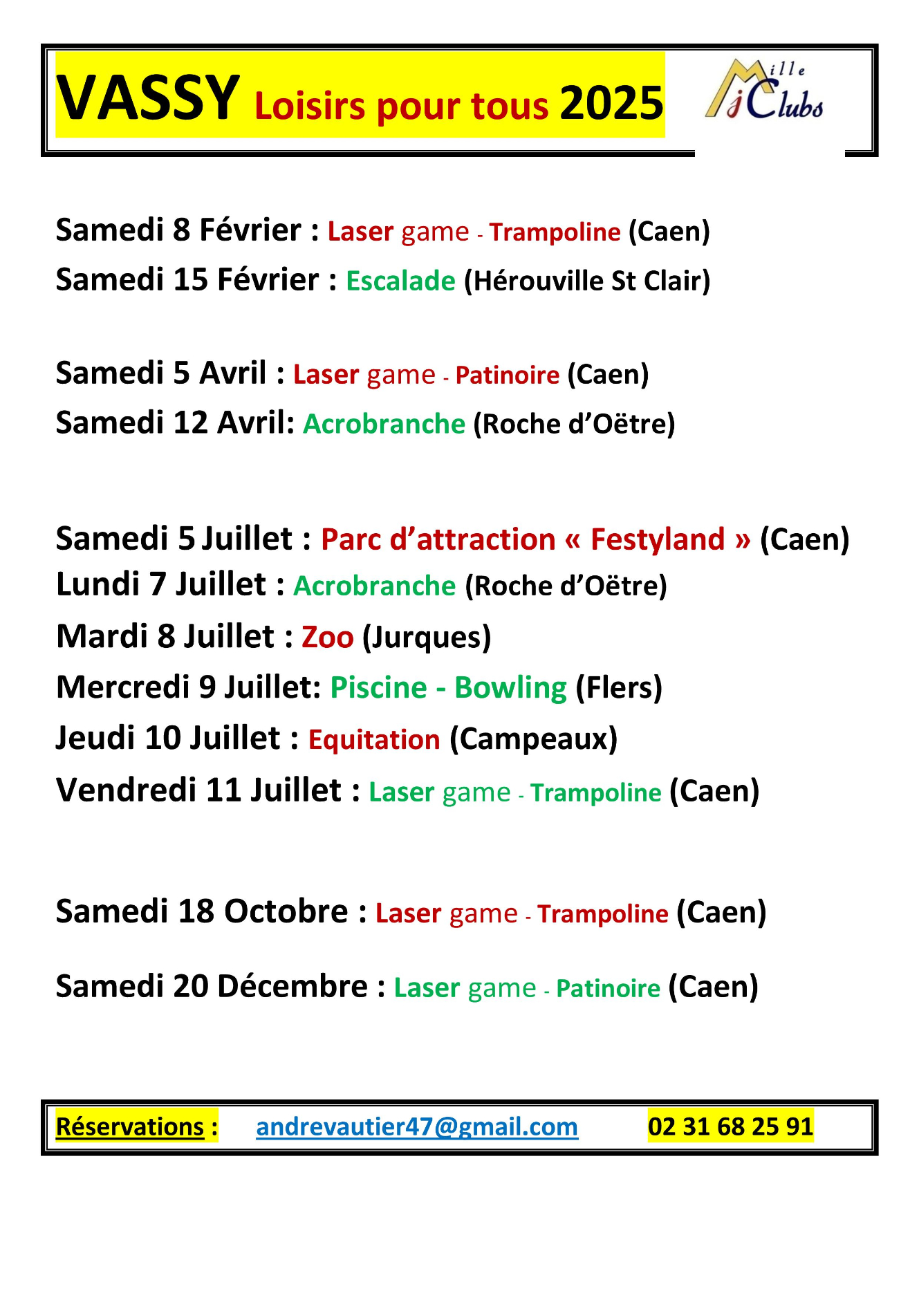 Renseignements et réservations au 02 31 68 25 91