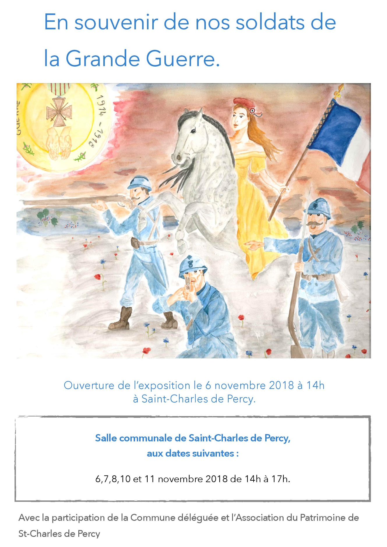 A Saint Charles de Percy, les 6, 7, 8, 10 et 11 novembre 2018 de 14 heures à 17 heures, une exposition « En souvenir de nos soldats de la Grande Guerre. » était visible à la salle communale.