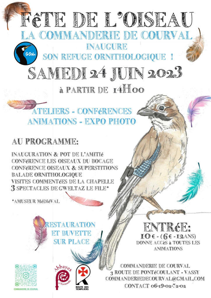 La commanderie de Courval vous invite à la Fête de l’Oiseau qui aura lieu le samedi 24 juin prochain à partir de 14h à la Commanderie de Courval à l’occasion de l’inauguration du refuge ornithologique.