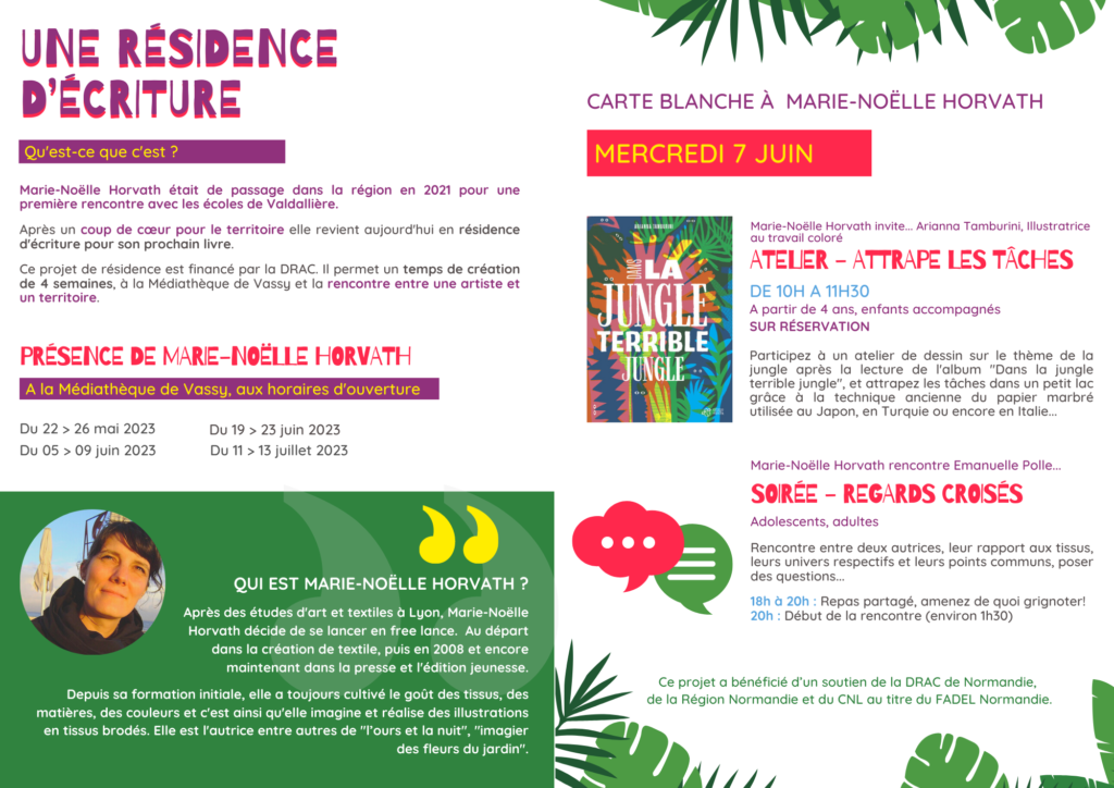 Le réseau des Médiathèques de Valdallière accueil à partir du 22 mai, l’autrice Marie-Noëlle HORVATH pour une résidence d’écriture de 4 semaines.
