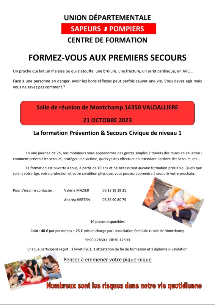 L’association familiale rurale de Montchamp vous propose un stage des gestes de premier secours le samedi 21 octobre 2023!