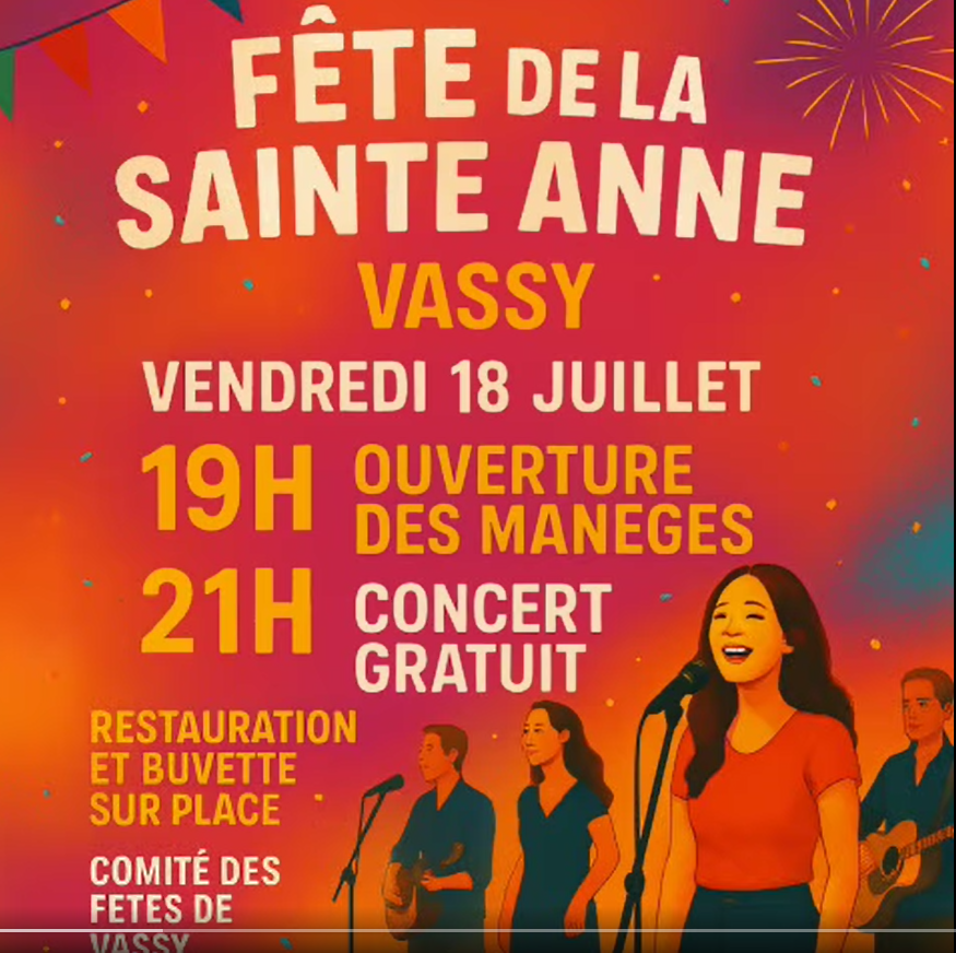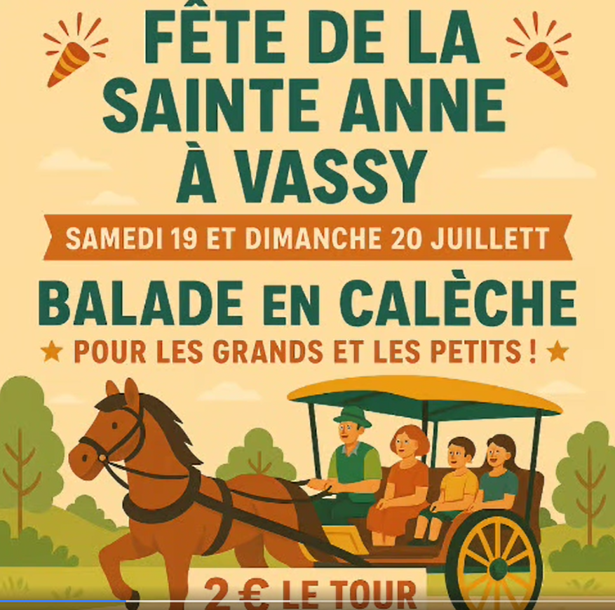 Le Comité des Fêtes de Vassy organise la traditionnelle fête Sainte Anne avec des animations tout au long du week-end.
