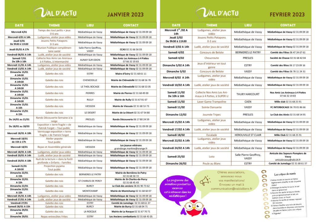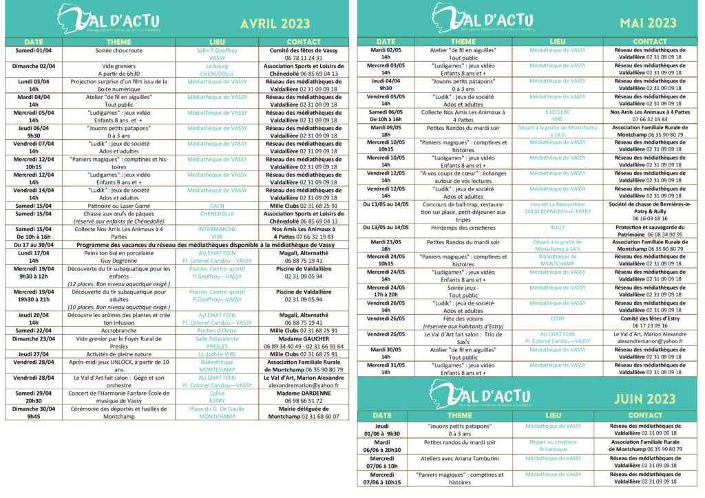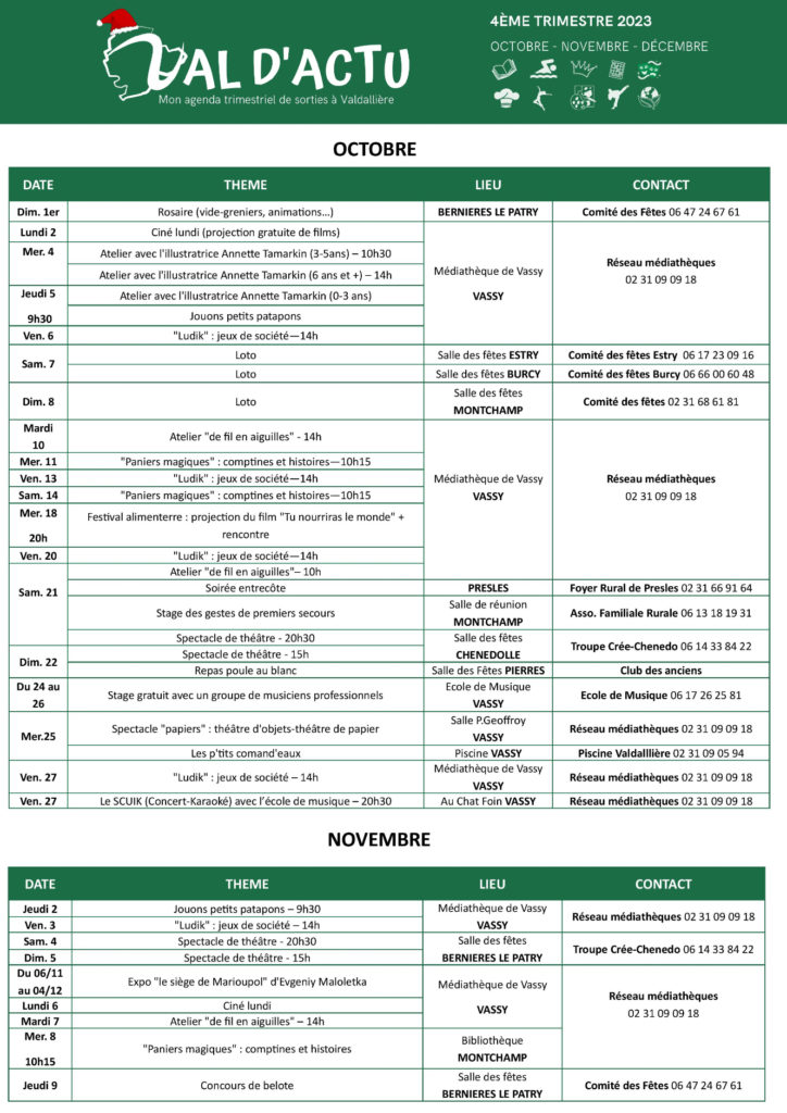 Val d’Actu, l’agenda trimestriel de vos sorties à Valdallière !