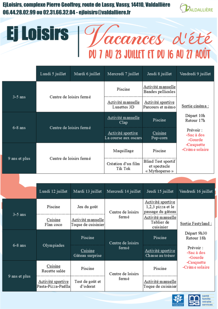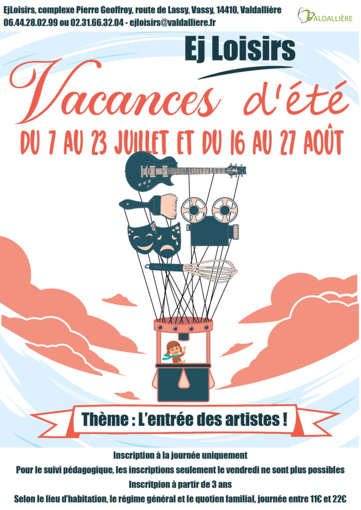 Renseignements et inscriptions auprès de Blandine Barbé au 02 31 66 32 04 ou 06 44 28 02 99 ou ejloisirs@valdalliere.fr.
