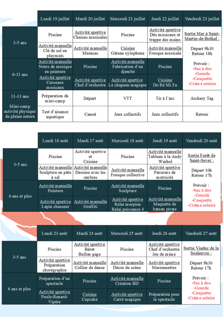 EJ Loisirs propose un accueil pour les enfants de 3 à 11 ans pendant les vacances d’été du 7 au 23 juillet et du 16 au 27 août 2021.