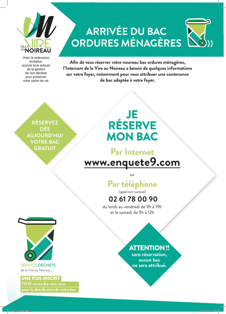 Afin de vous réserver votre nouveau bac ordures ménagères, l’Intercom de la Vire au Noireau a besoin de quelques informations sur votre foyer, notamment pour vous attribuer une contenance de bac adaptée à votre foyer.