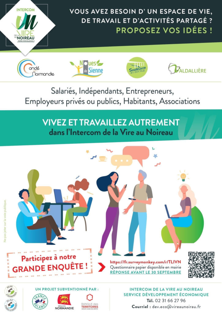Sinon, le questionnaire en version papier est également disponible dans les mairies de Condé-en-Normandie, Noues de Sienne, Souleuvre en Bocage et Valdallière ainsi qu’au siège de l’Intercom. 🔴 Informations : Service développement économique de l’Intercom