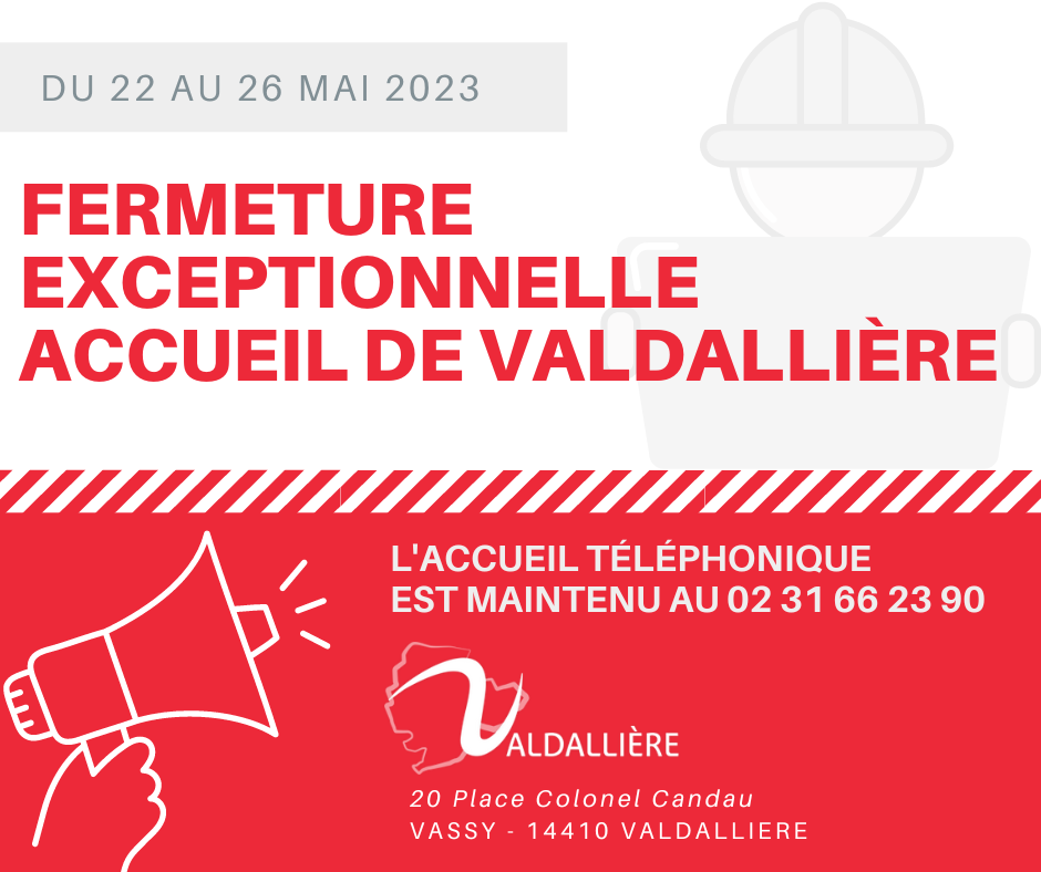 L’accueil de Valdallière ferme ses portes ce vendredi 19 mai toute la journée, aucun accueil téléphonique ne sera assuré ce jour là.