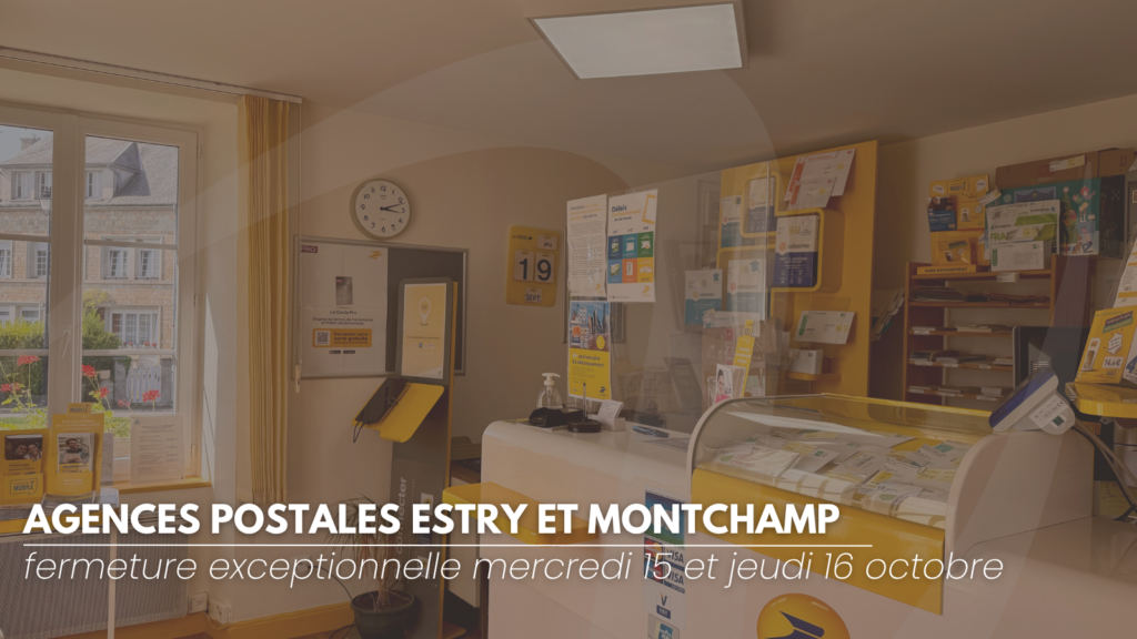 ❌️ Les Agences Postales Communales d’Estry et Montchamp seront exceptionnellement fermées lundi 10 novembre 2025.