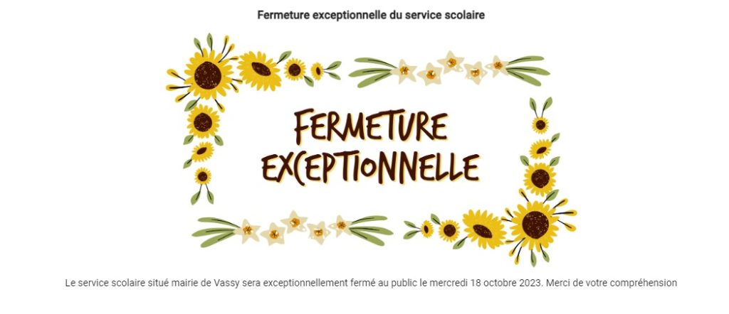 FERMETURE EXCEPTIONNELLE SERVICE SCOLAIRE