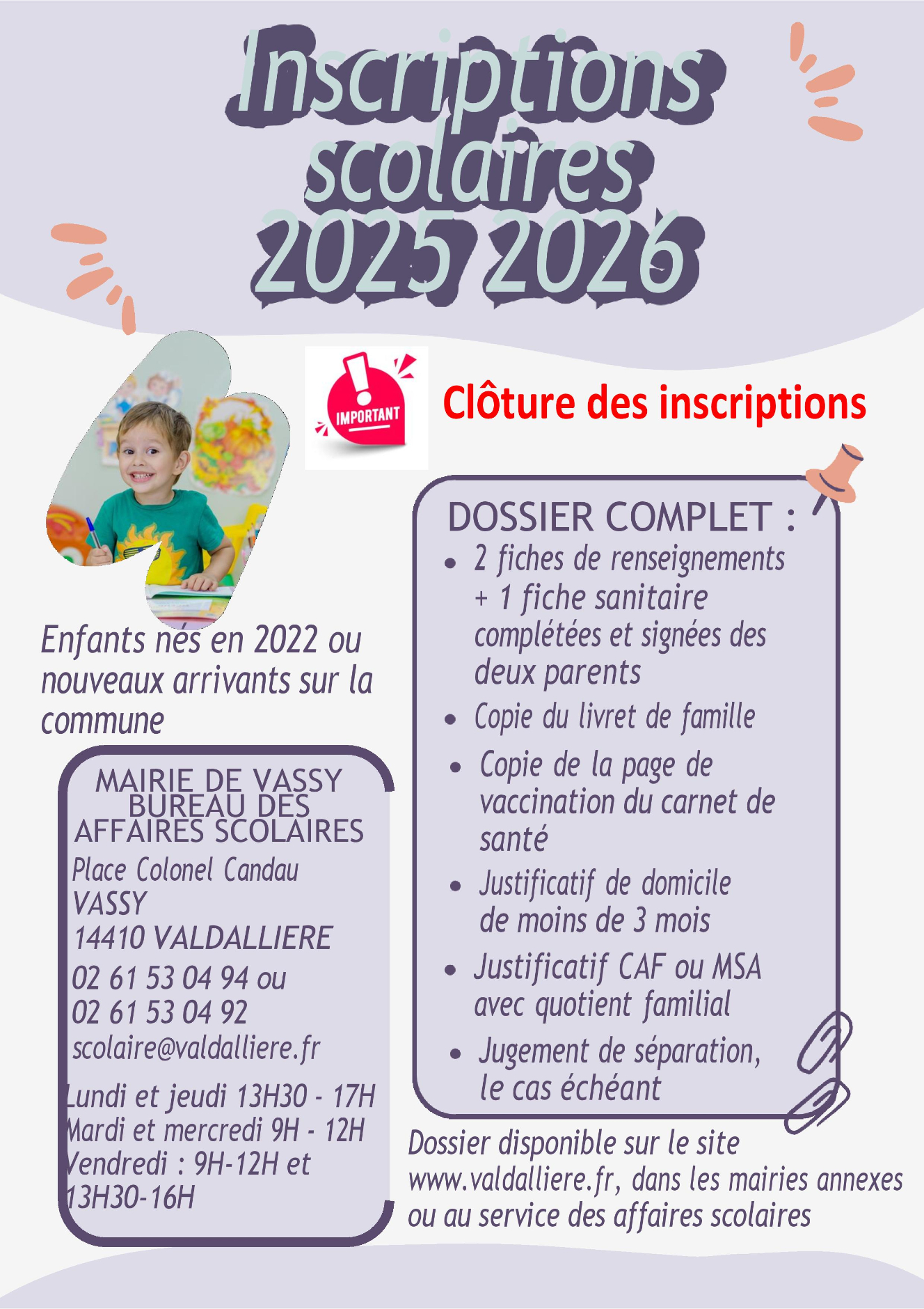 DERNIERS JOURS POUR LES INSCRIPTIONS SCOLAIRES 2025-2026 !