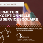 FERMETURE DU SERVICE SCOLAIRE DU 31 JUILLET AU 4 AOÛT