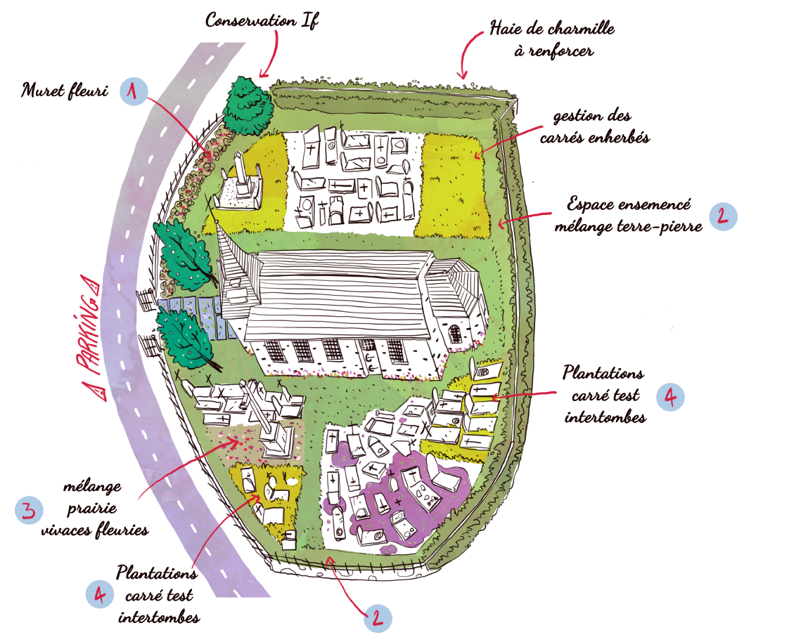 Depuis 2017, la commune n’utilise plus de produits phytosanitaires pour l’entretien de ses espaces verts. Toutefois, il existe un espace à part où ces produits sont toujours utilisés : le cimetière. La commune de Valdallière souhaite, en modifiant ses pratiques de gestion et d’entretien du cimetière, offrir un cadre plus sain, propice au deuil et au recueillement, permettre la valorisation du patrimoine funéraire, tout en accueillant la nature.