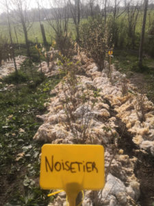 La laine de mouton, riche en suin et isolante, permet de retenir l’humidité tout en apportant des nutriments au sol et aux plants et en empêchant la concurrence herbacée.