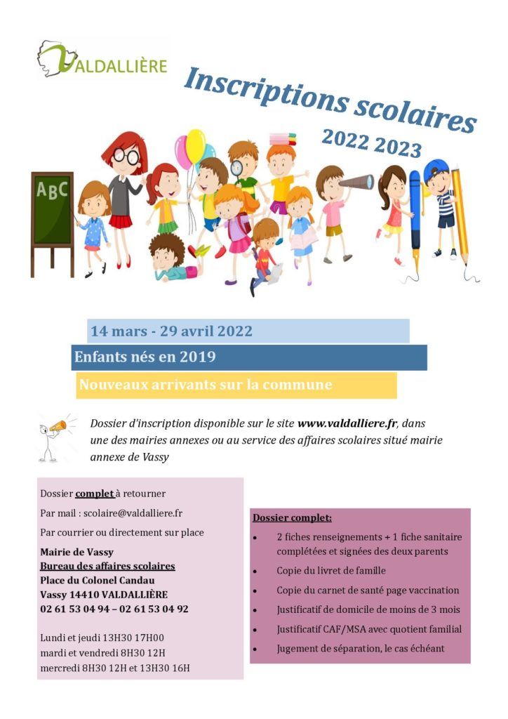 Pour inscrire votre enfant dans les écoles de Valdallière à la rentrée prochaine, c’est maintenant !!