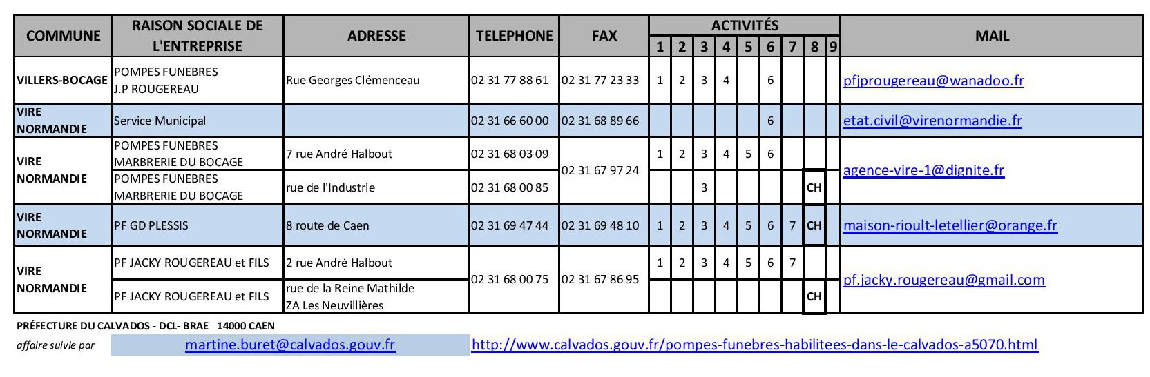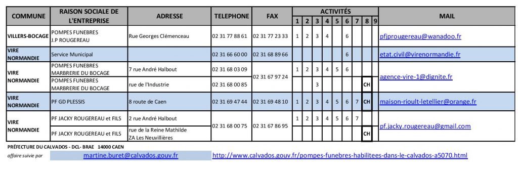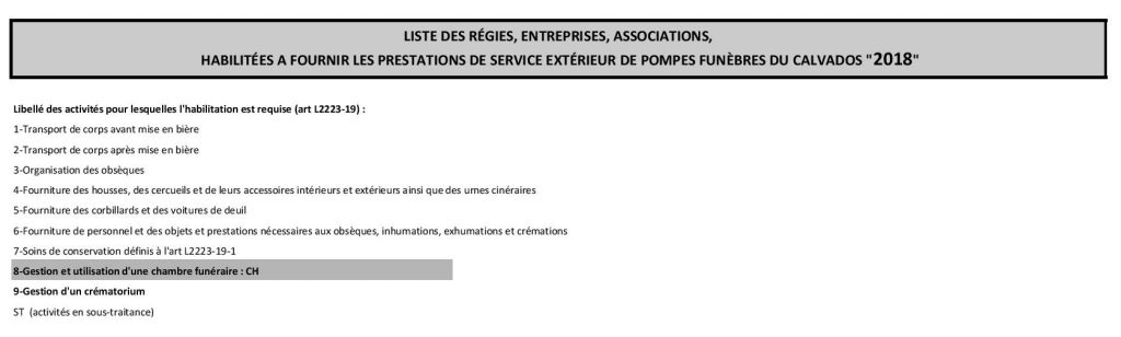LISTE COMPLÈTE DES POMPES FUNÈBRES DU CALVADOS 2018