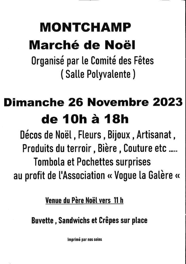 Dimanche 26 novembre 2023 : Marché de Noël à Montchamp
