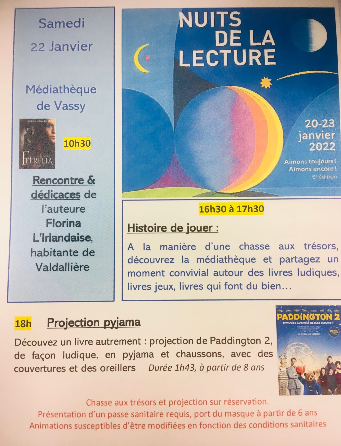Samedi 22 janvier 2022 : Nuit de la lecture à la médiathèque de Vassy