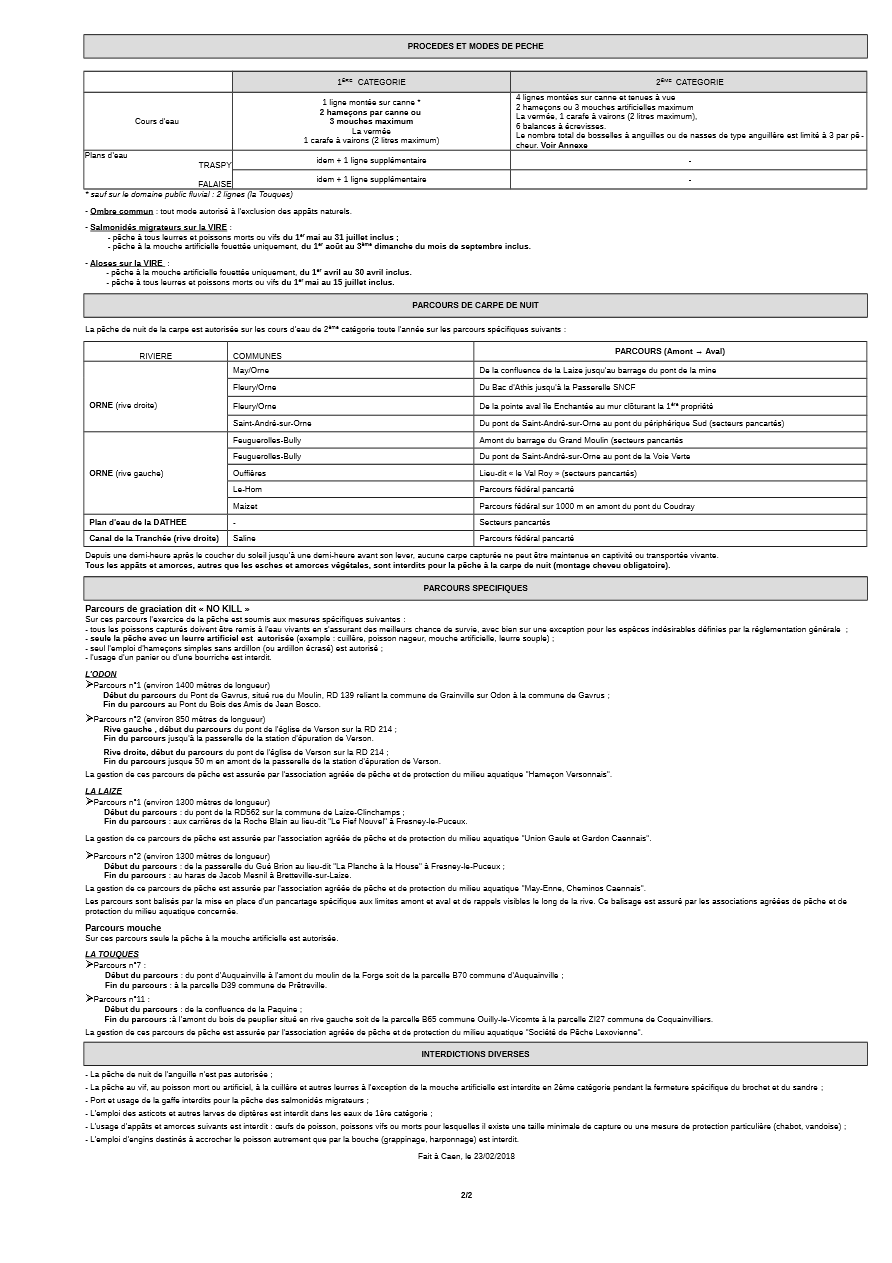 Modalités d’exercice de la pêche fluviale dans le département du Calvados.