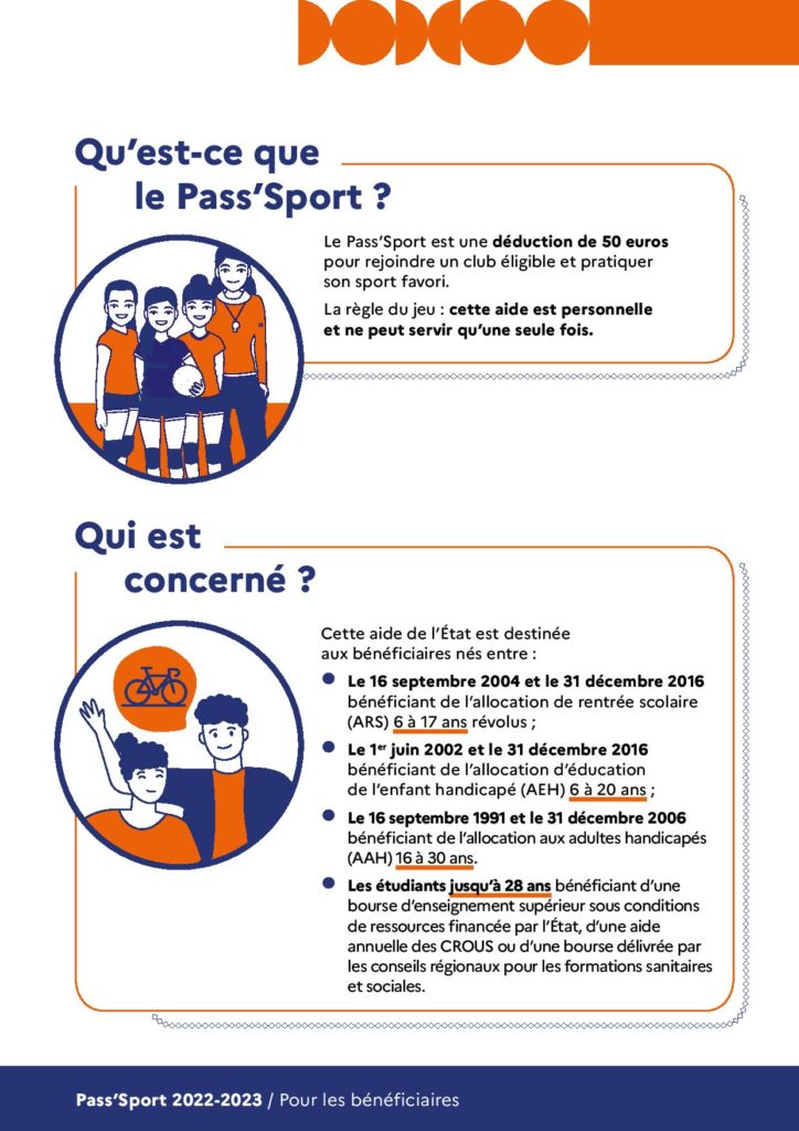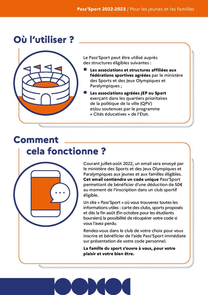Retrouvez toutes les informations sur le lien suivant :  https://sports.gouv.fr/pratiques-sportives/sports-pour-tous/pass-sport/ et sur la vidéo de présentation https://vimeo.com/727000609