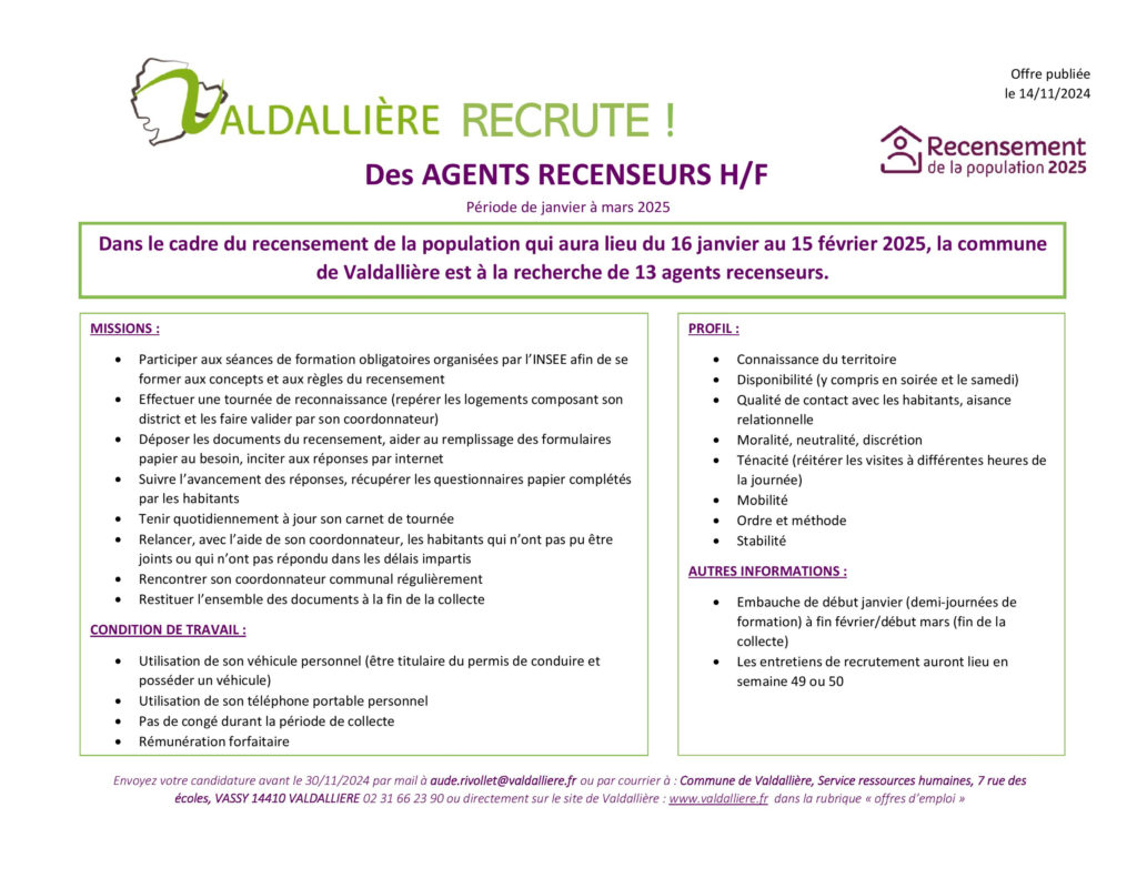 OFFRE D’EMPLOI D’AGENT RECENSEUR