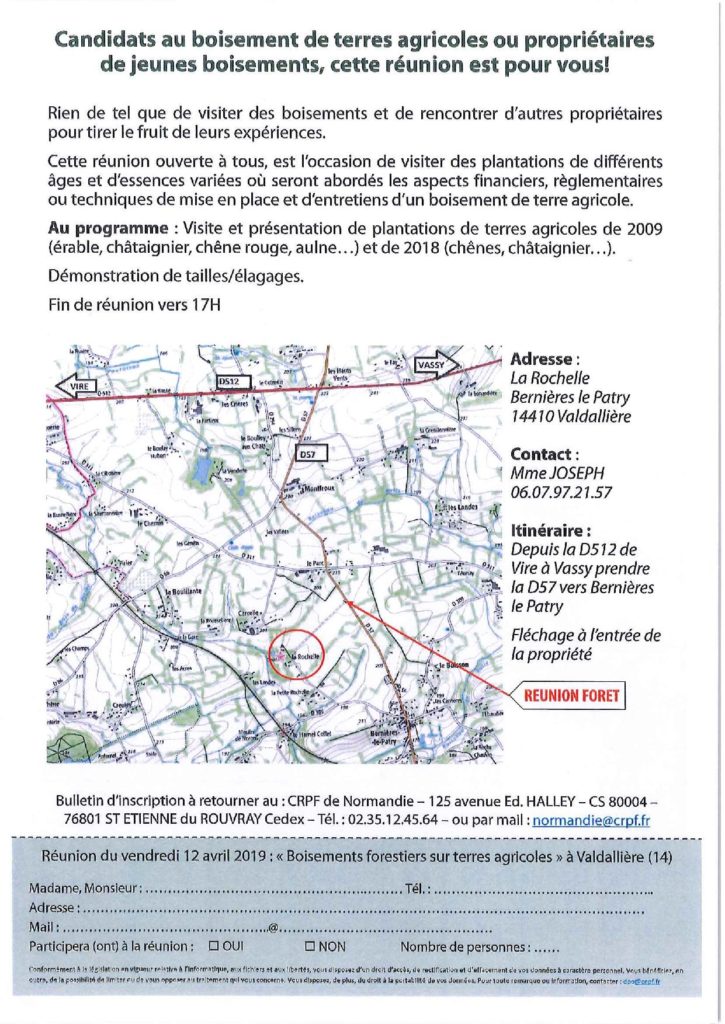 Cette réunion s’adresse aux personnes intéressées par le boisement ou le reboisement. Attention !! Inscription obligatoire !