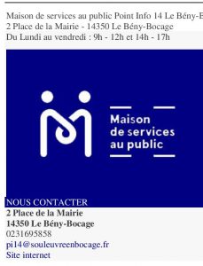 Vous pouvez également contacter le Point Info 14 de Condé sur Noireau :