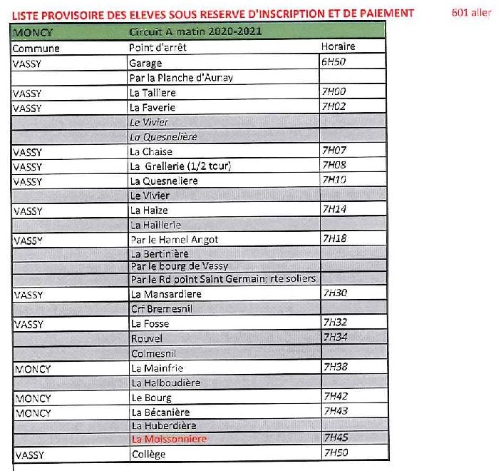 Circuits de ramassage pour le collège Anne Franck de Vassy