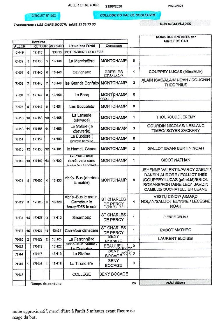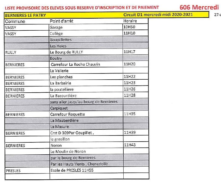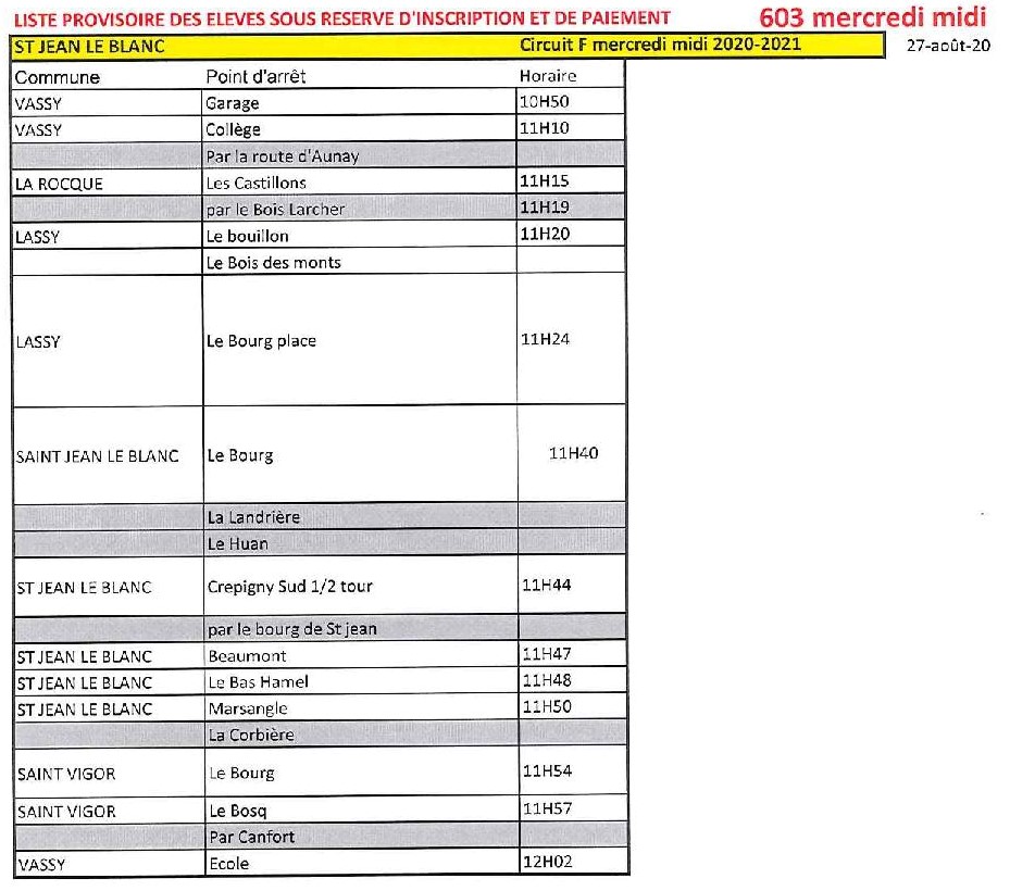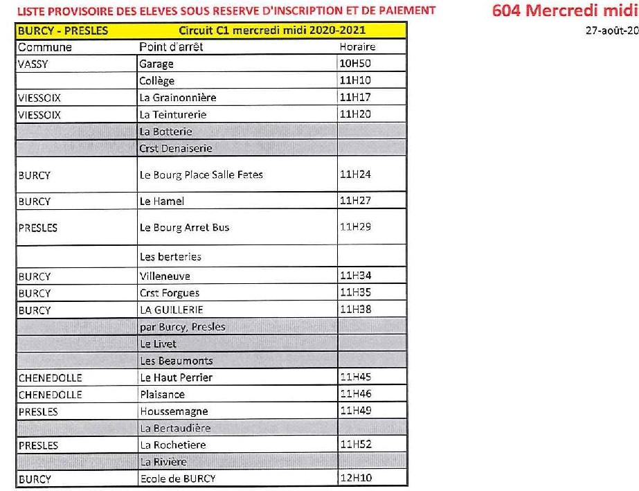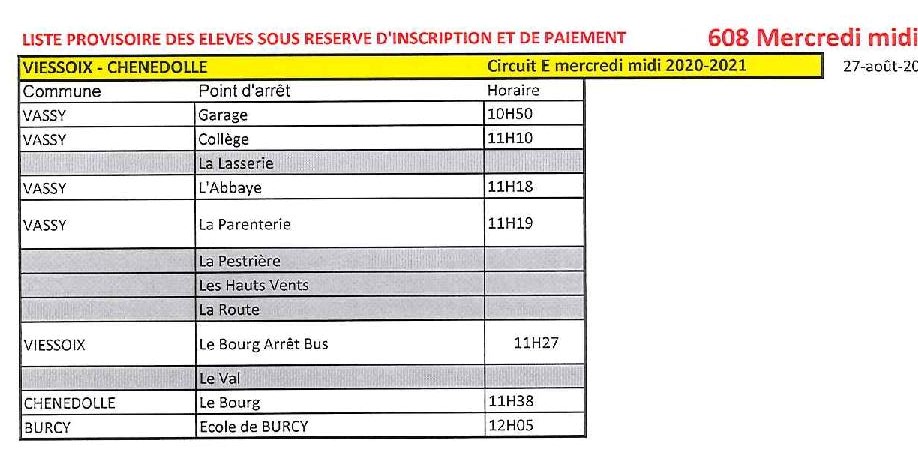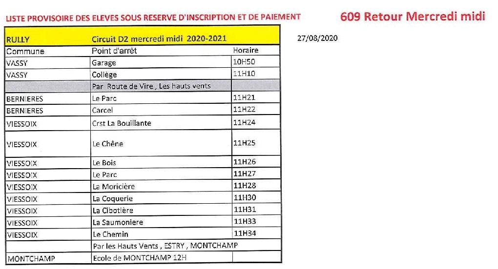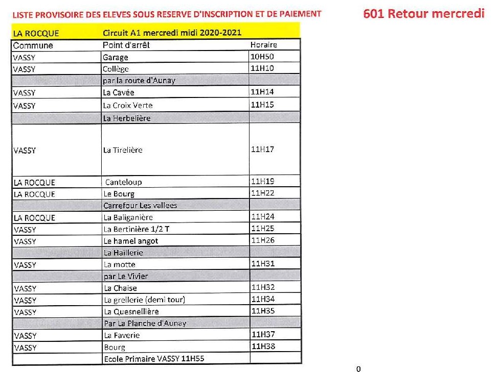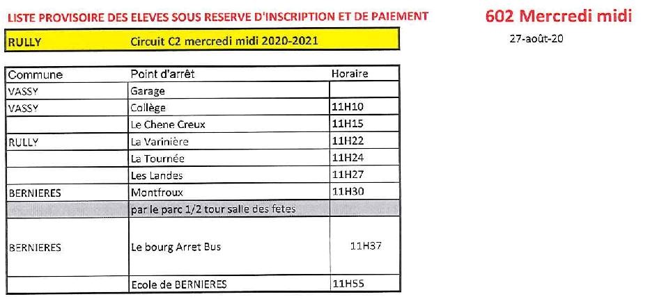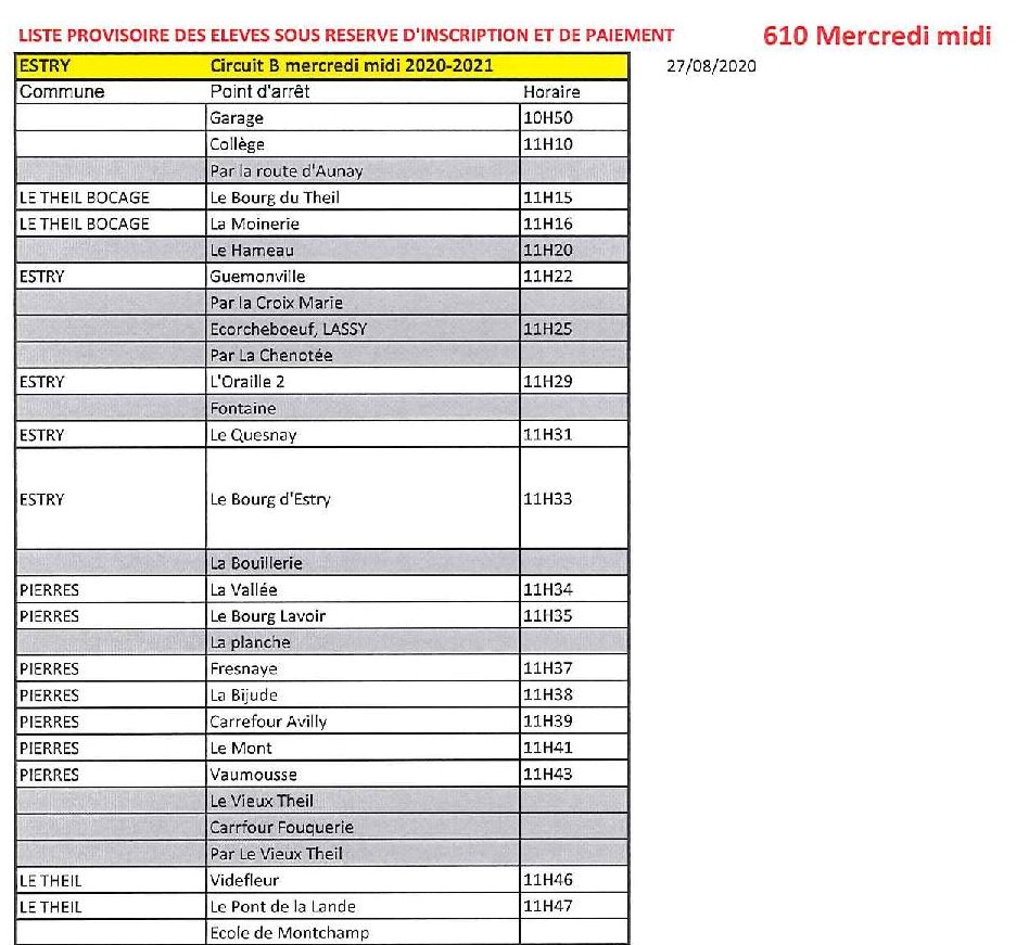 Circuits téléchargeables : Horaires transports scolaires collège mercredi midi