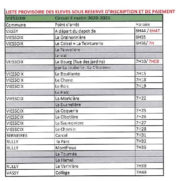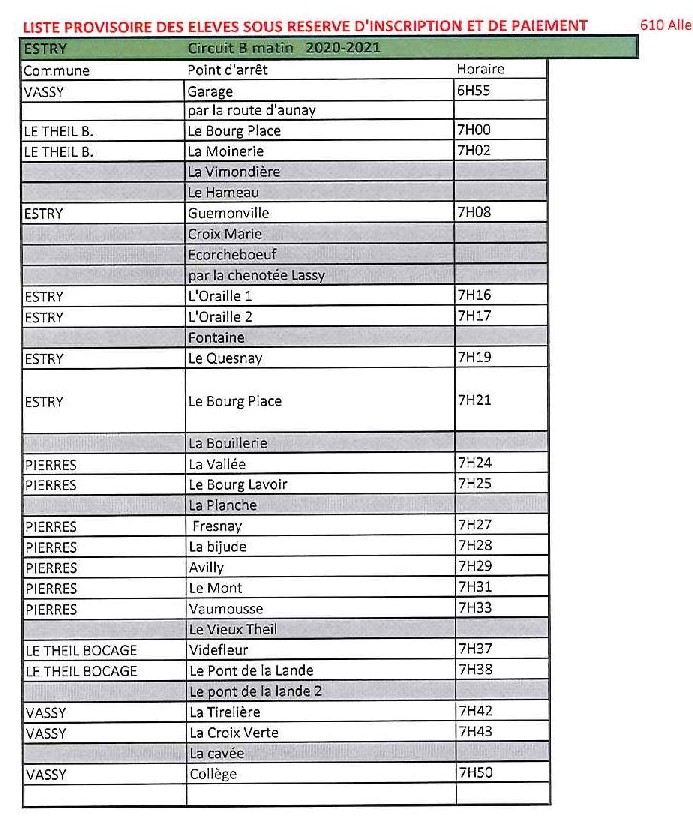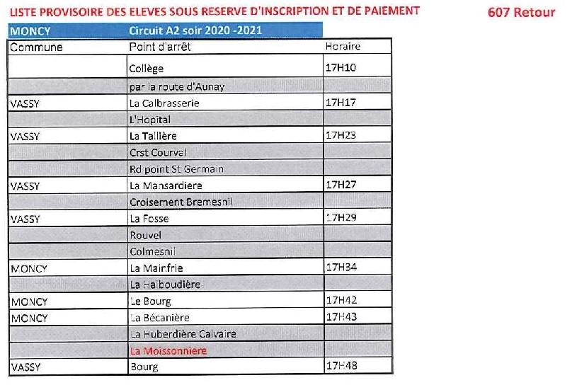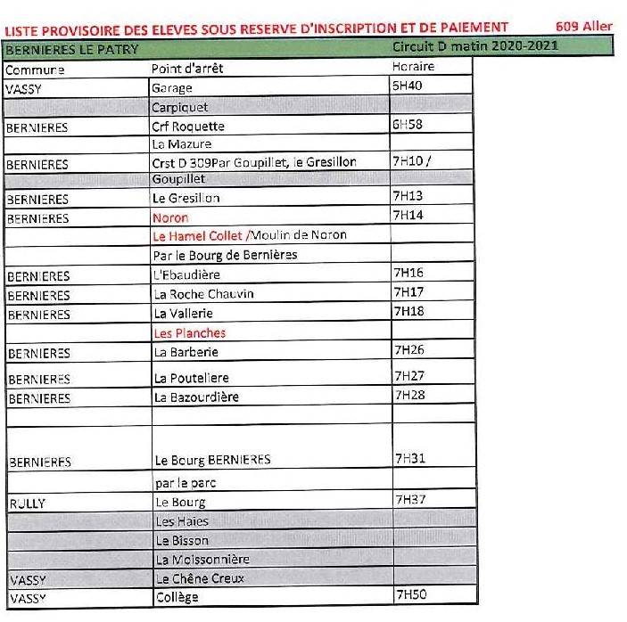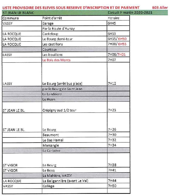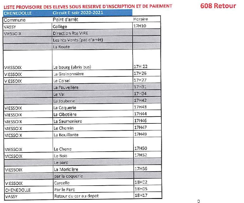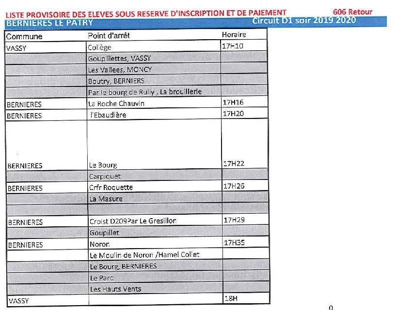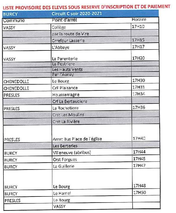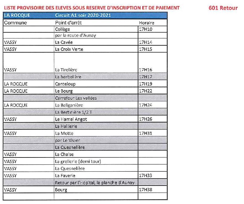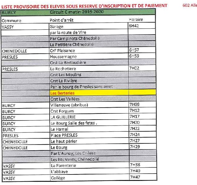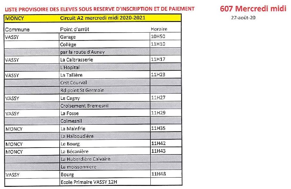 Circuits téléchargeables : Horaires transports scolaires collège mercredi midi