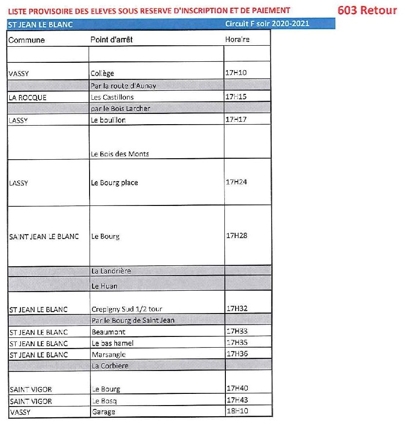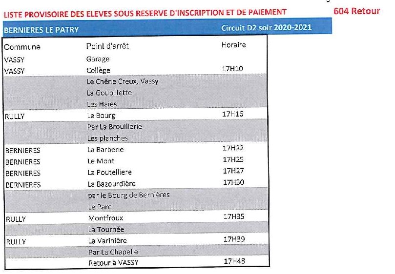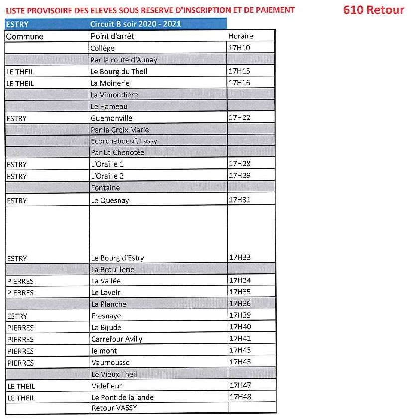 Circuits téléchargeables : Horaires transports scolaires collège soir