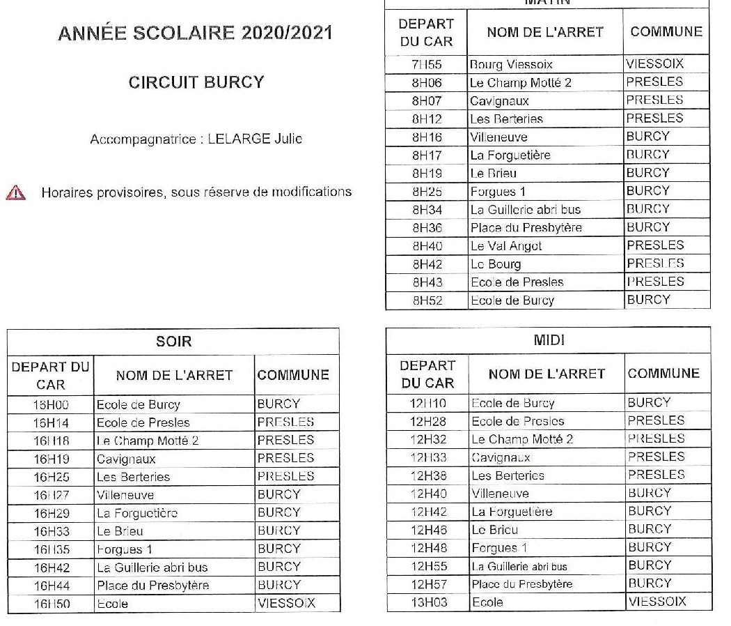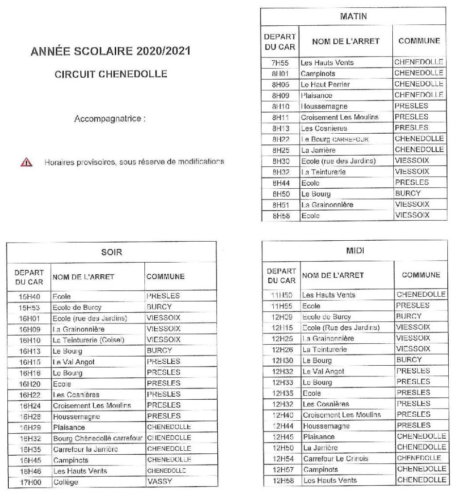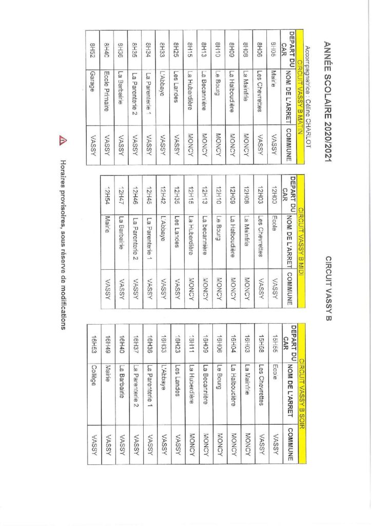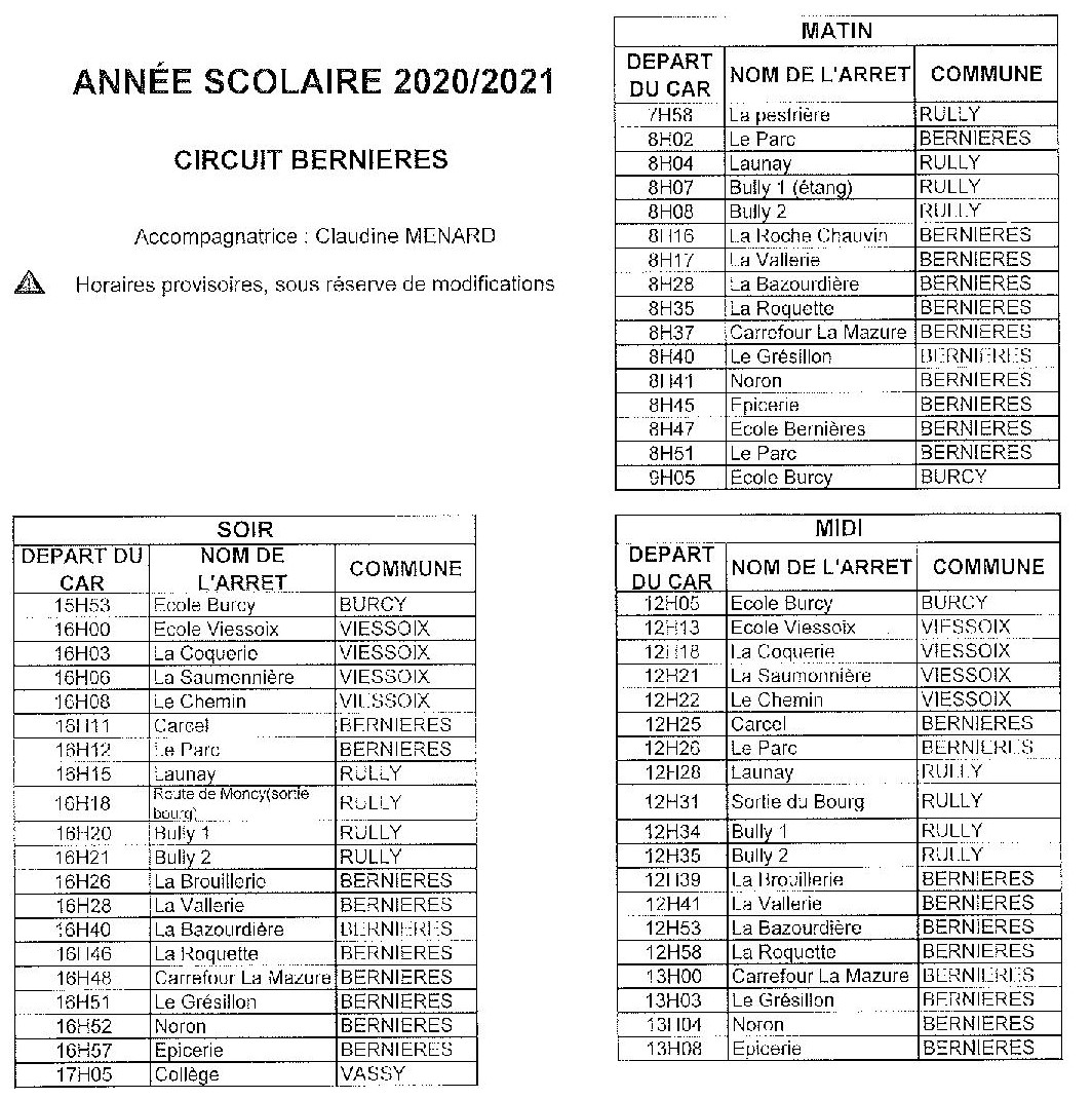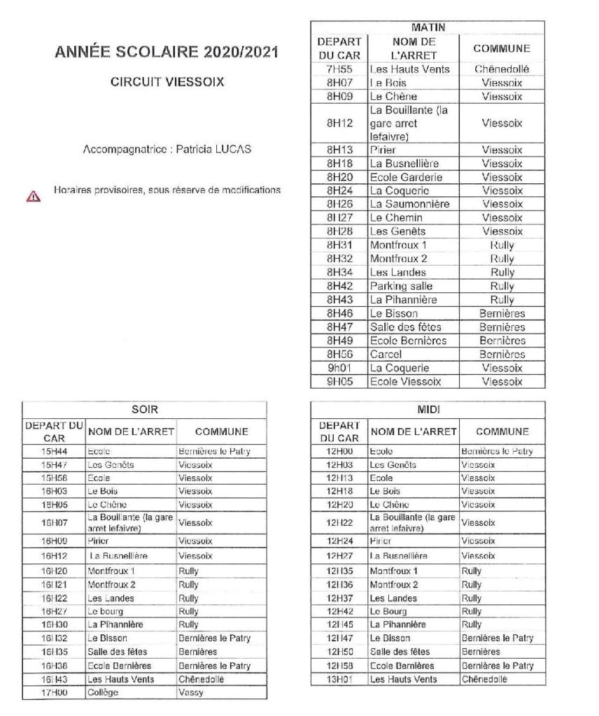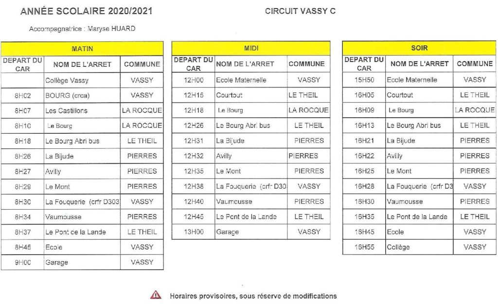 Transport scolaire année 2020/2021, écoles de Valdallière