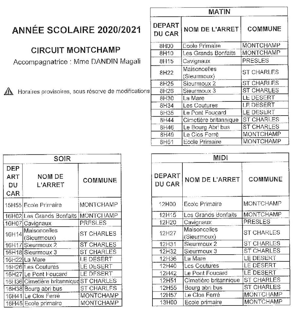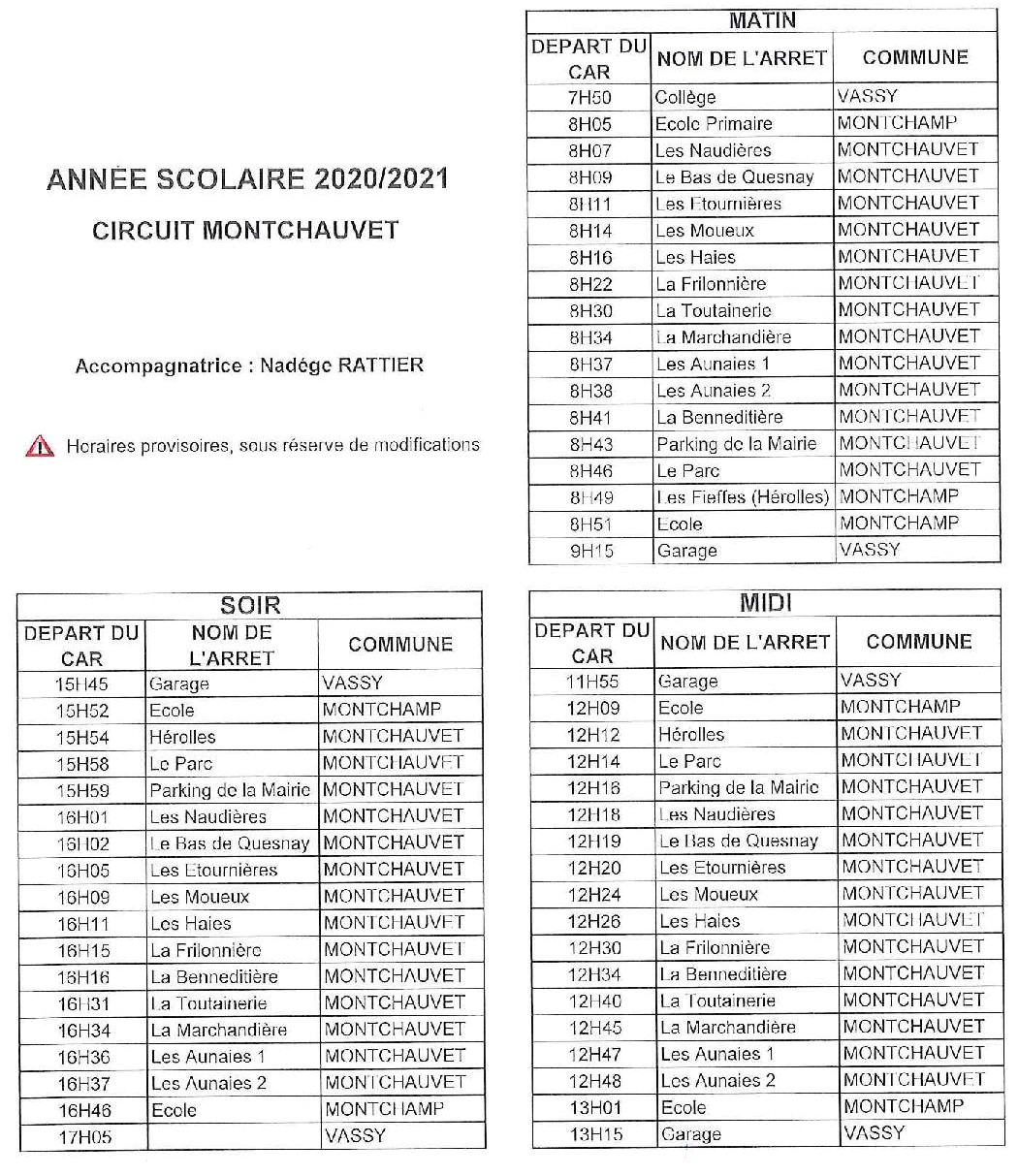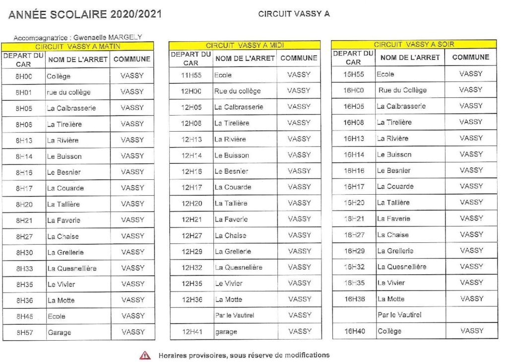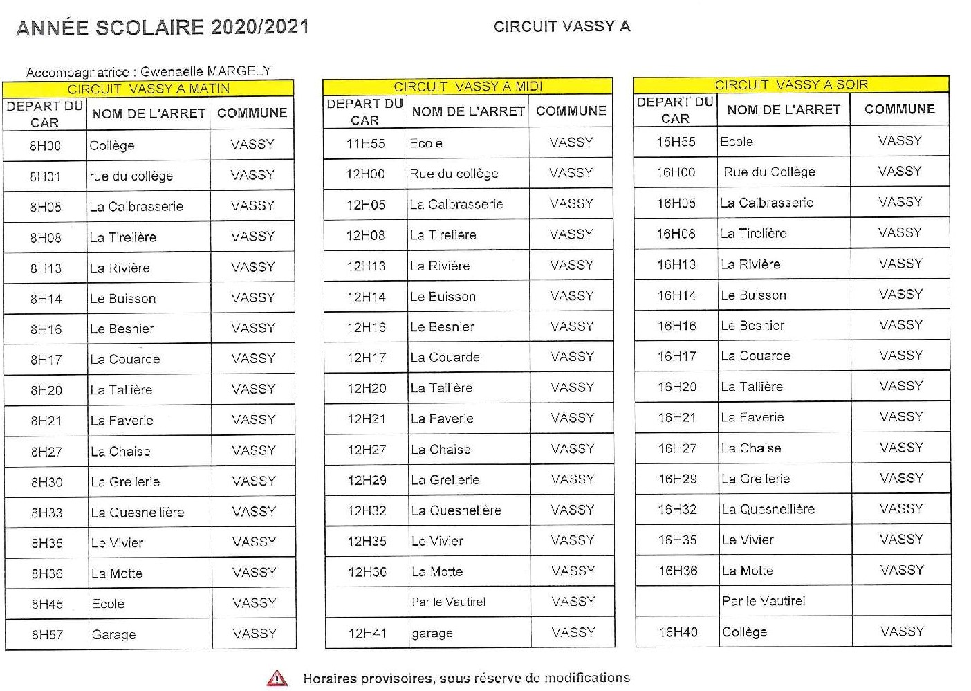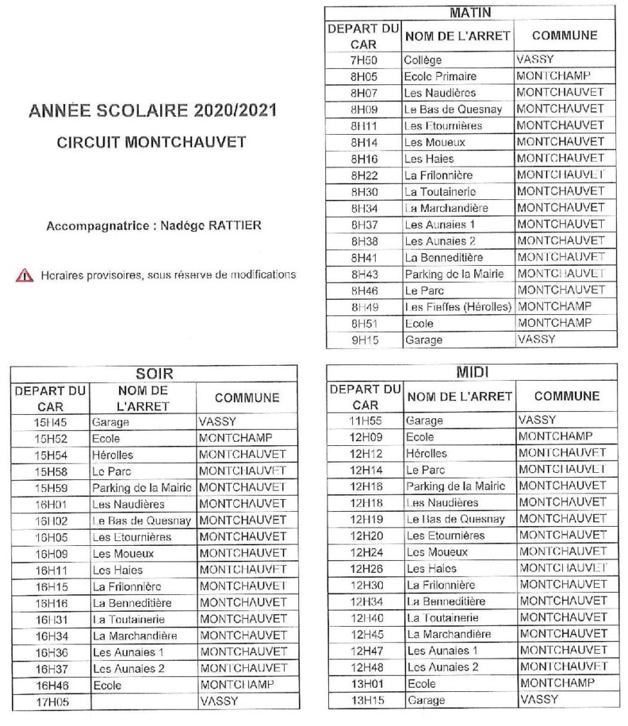 Transport scolaire année 2020/2021, écoles de Valdallière