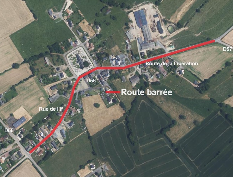 Durant ces périodes, la circulation est interdite (sauf riverains) dans le bourg (D56), rue de l’If et route de la Libération du carrefour de la D55 jusqu’au carrefour de la D57.